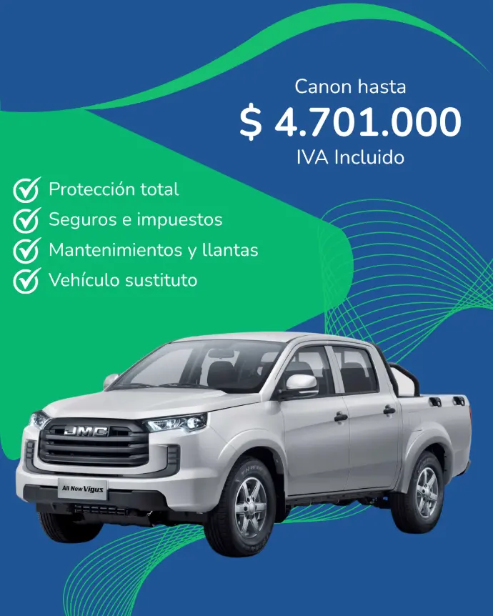 Promoción válida hasta el 31 de octubre y/o hasta agotar existencias. Aplican términos y condiciones. Sujeto de aprobación por Renting Colombia