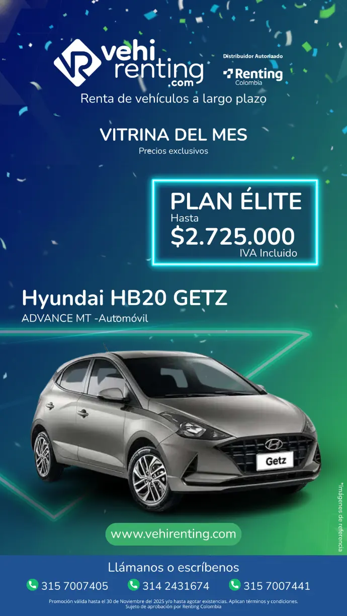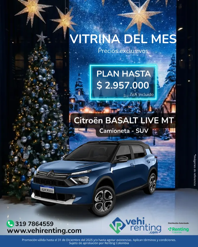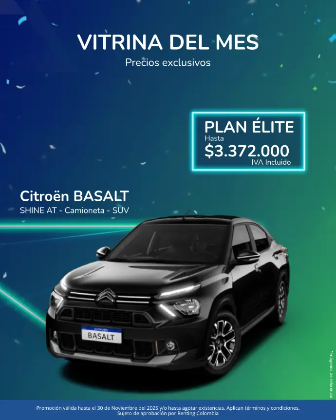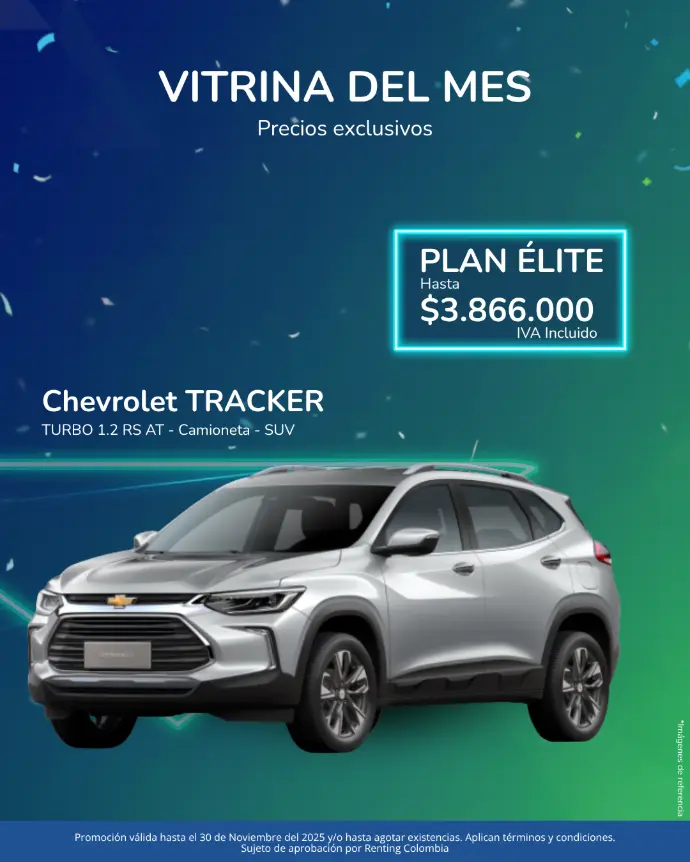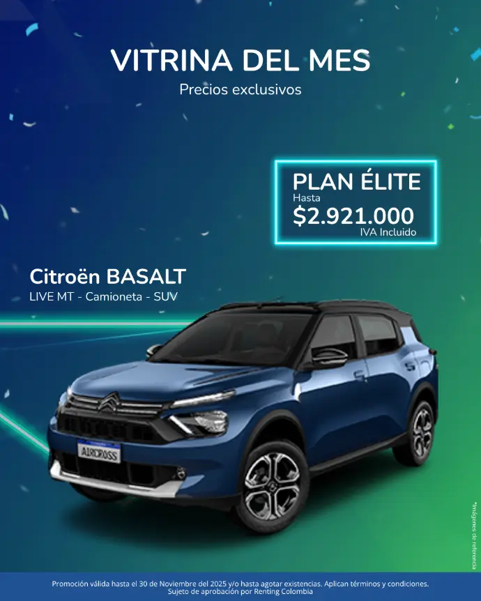 Promoción válida hasta el 30 de noviembre y/o hasta agotar existencias. Aplican términos y condiciones. Sujeto de aprobación por Renting Colombia
